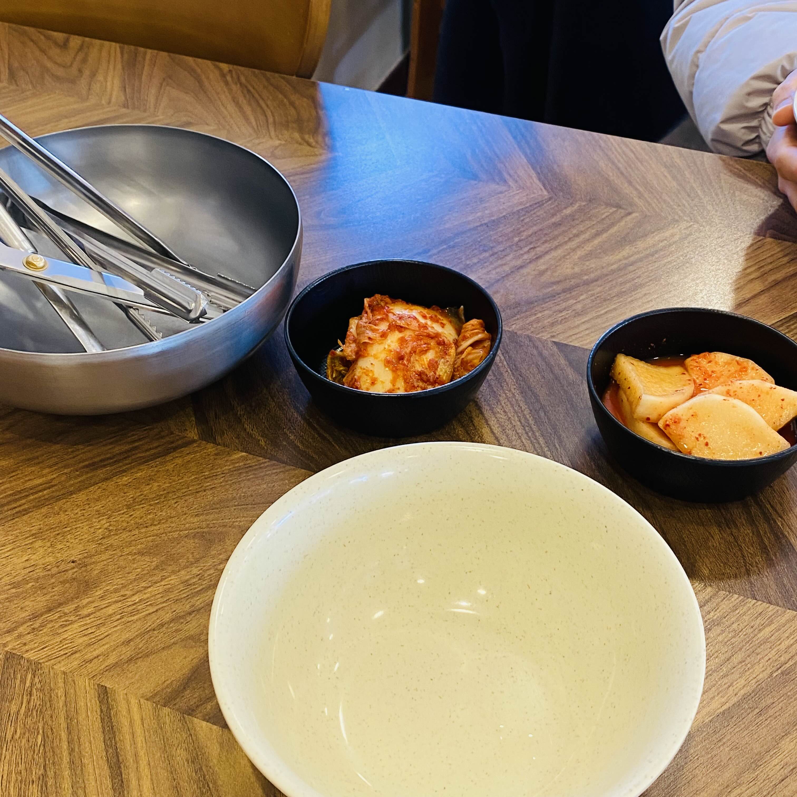 앞접시와 기본 반찬인 깍두기와 매운 김치가 나온답니다.